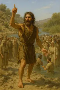John the Baptist, emerging from humble origins and the wilderness, ministers a call to repentance and baptism, preparing the way for Jesus and the coming kingdom of God.